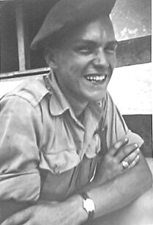 We were ordered to investigate a farmhouse nearby in a field where a German mortar crew have been spotted. Suddenly I heard shot's and saw Kent emptying the whole magazine from his Sten gun into a leafy tree and branches, twigs and leaves are flying in all directions. Then, a German voice called out timidly from within the tree.The branches rustled as a pair of booted German legs swang down. The heel of one of them had been shot off. A young bespectacled German soldier, maybe in his late teens, dropped down to the ground, face white with fear and his hands up in the air in a gesture of surrender. Some of the Paratroopers started giggling and joking that Kent couldn't hit a barn door. Kent just looked at his Sten gun in amazement. The German Soldier started laughing too and pointed to his boot, raising it to show that the heel was barely hanging on by a thread.